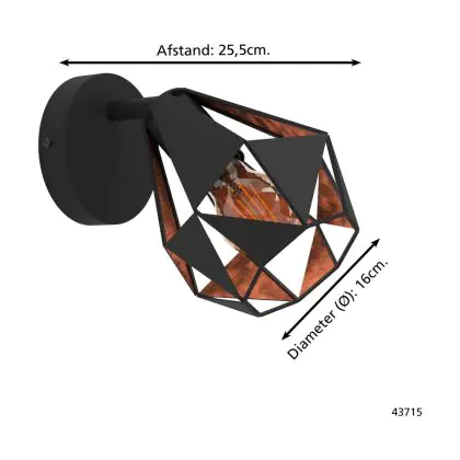 Eglo Luce Da Parete Carlton 7 Acciaio Nero Rame | IP20 - Adatto per 1x E27