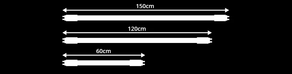 - Tubi T12 → Questi tubi neon hanno diametro di 38 mm, attacco G13 e sono lunghi fino a 150 cm.