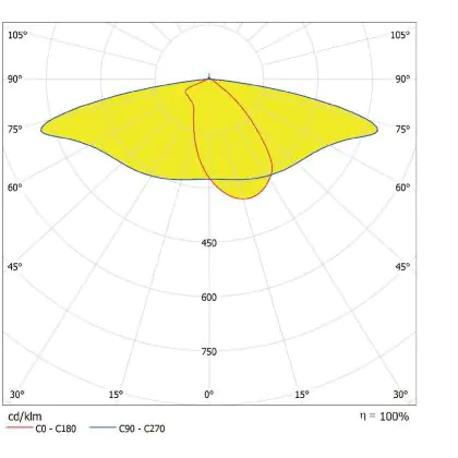 L'alloggiamento impermeabile di questa sorgente luminosa non è l'unica ragione per cui è perfetta per l'uso all'aperto. Infatti bisogna considerare anche la distribuzione della luce di questa lampada stradale, che ha apertura del fascio luminoso di 160x58° ed emette luce di colore 6500K - Luce del Giorno.