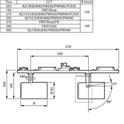I faretti a binario LED sono fra i sistemi di illuminazione più versatili, in quanto essendo appunto montati su dei binari, è possibile spostare i punti luce a piacimento. Inoltre, le lampade sono anche ruotabili e direzionabili. A seconda delle dimensioni della superficie che deve essere illuminata, è meglio un’apertura del fascio di luce più o meno ampio. Questo apparecchio di Philips ha un'apertura del fascio luminoso di 41x80°.