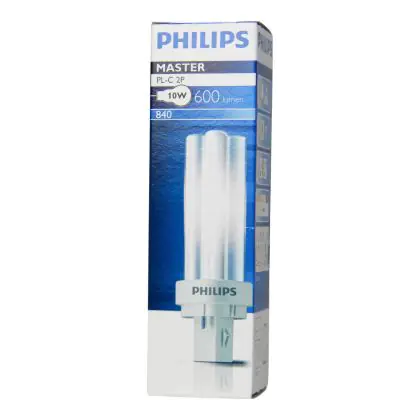 Philips PL-C è una lampada fluorescente compatta progettata da Philips per l’illuminazione generale di ambienti pubblici come hotel, negozi e ristoranti. Con un consumo energetico di 10W offre prestazioni luminose affidabili fino a 10.000 ore.